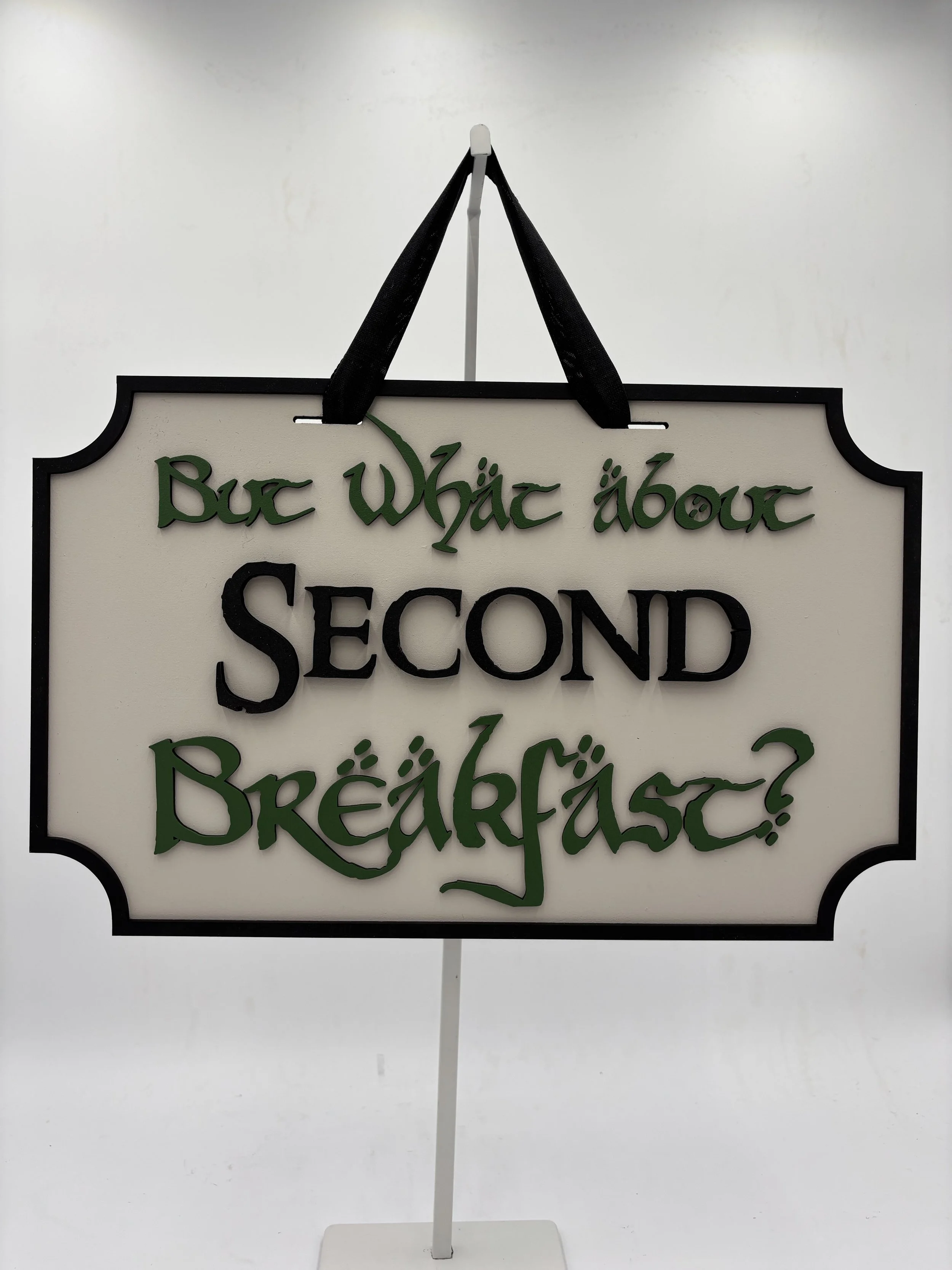 Bring a touch of whimsy and hobbit-inspired charm to your home with this Handmade Wooden “But What About Second Breakfast?” Sign—the perfect nod to fans of cozy adventures and hearty meals.